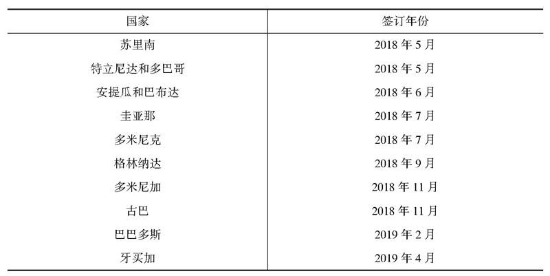 表2 2018~2022年已同中国签订共建“一带一路”谅解备忘录的加勒比国家