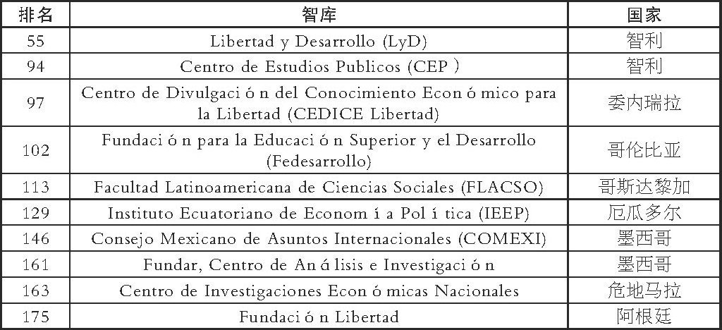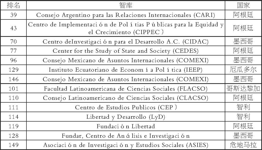 2、在拉丁美洲范围内, 秘鲁智库处于第二集团, 与拉美智库强国尚有差距